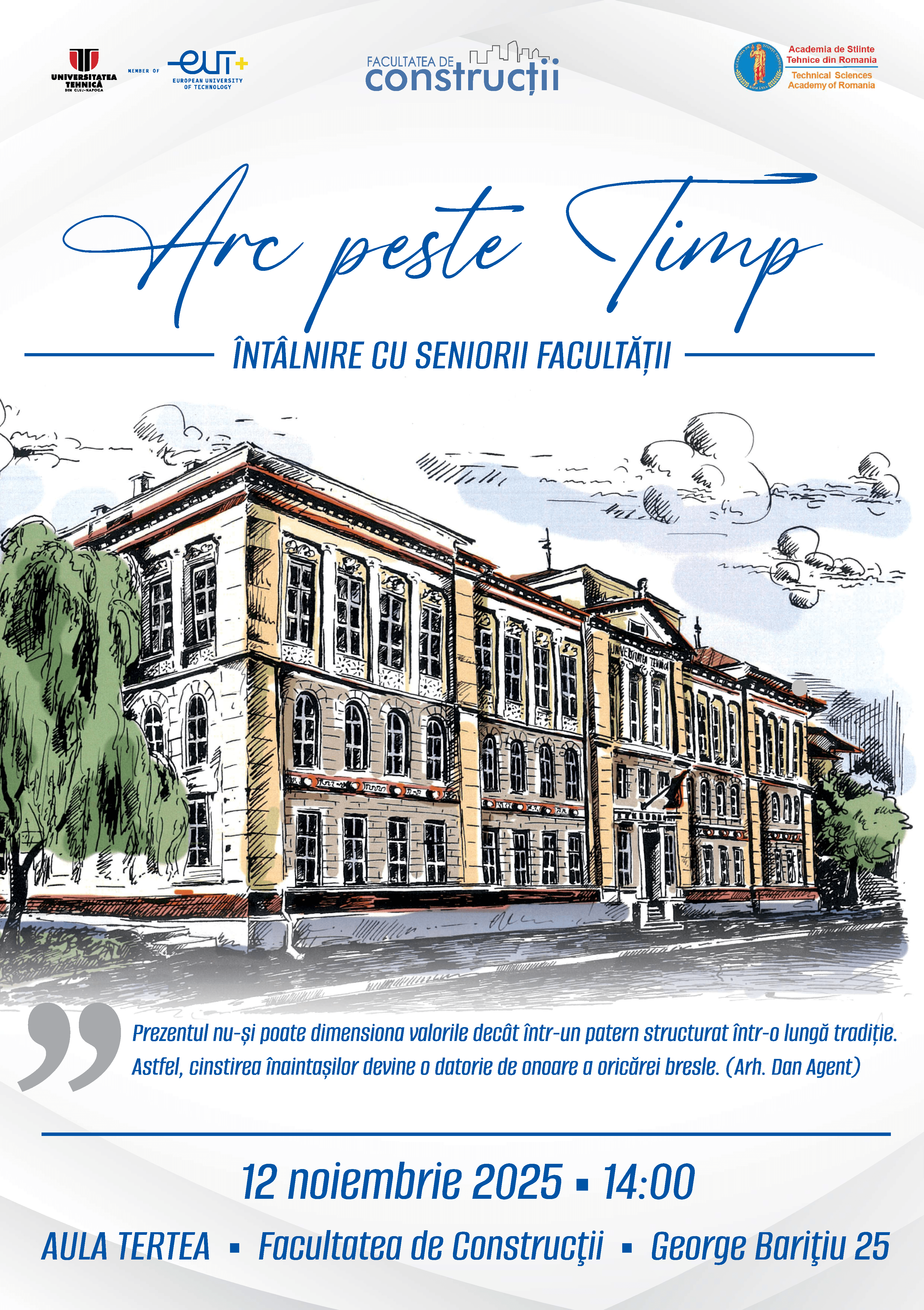 Vă invităm cu drag la evenimentul „Arc peste timp”, o întâlnire specială dedicată seniorilor Facultății de Construcții, celor care au clădit cu pasiune și dăruire temelia generațiilor de azi. 💙