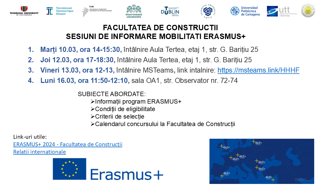 Sesiuni de informare mobilități Erasmus+ pentru anul universitar 2026-2027 si vara 2026