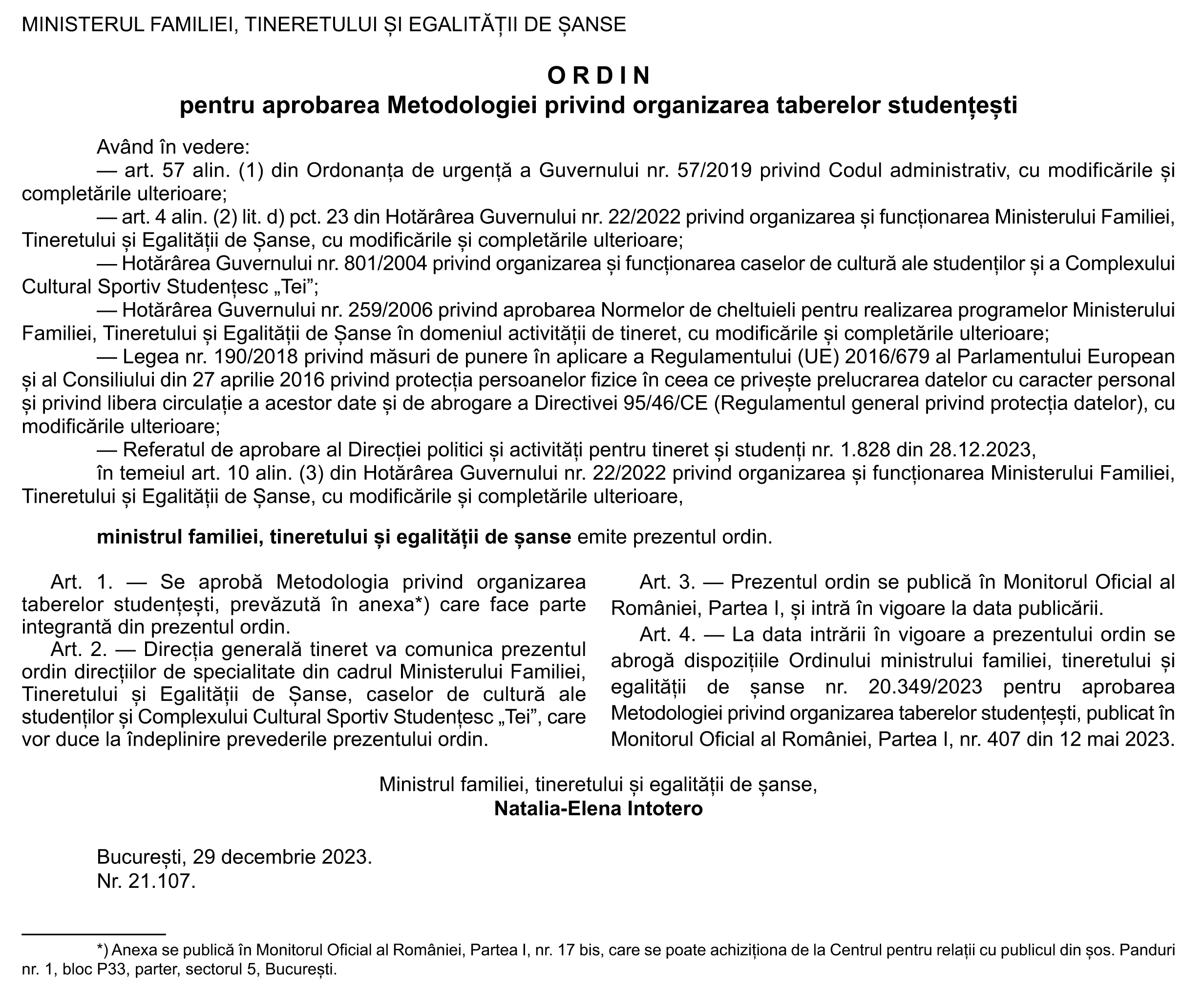 Cererea de tabara si declaraţia de consimţământ privind prelucrarea datelor cu caracter personal se poate depune pana in 28.01.2024.