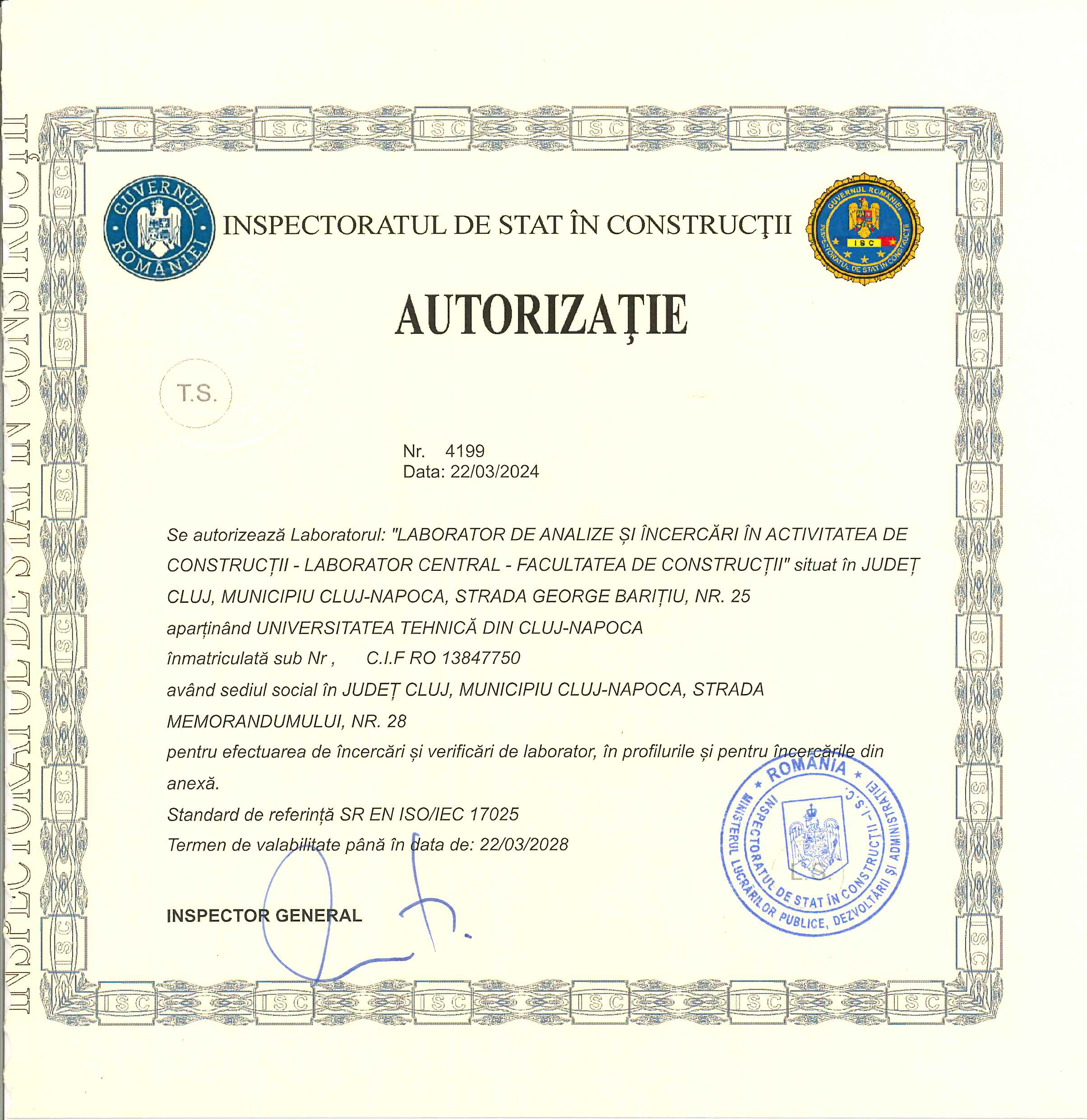 ✔ Laborator autorizat ISC – respectarea cerințelor legale și a celor mai înalte standarde de calitate